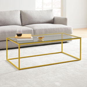 Stream Orta Sehpa Sarı Ayak Şeffaf Cam Tabla
